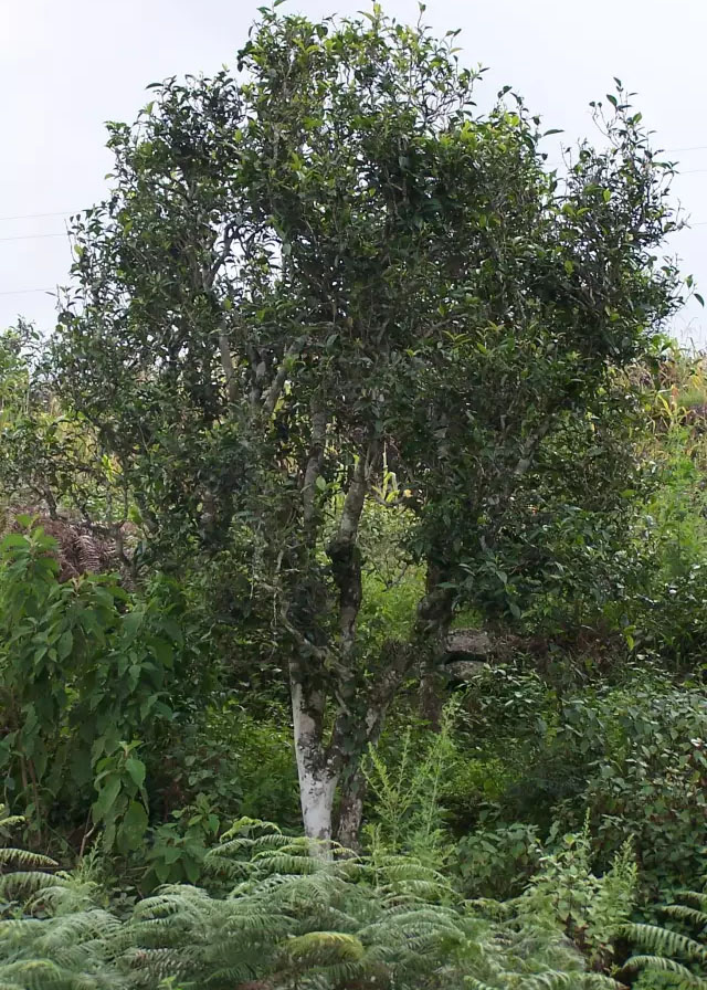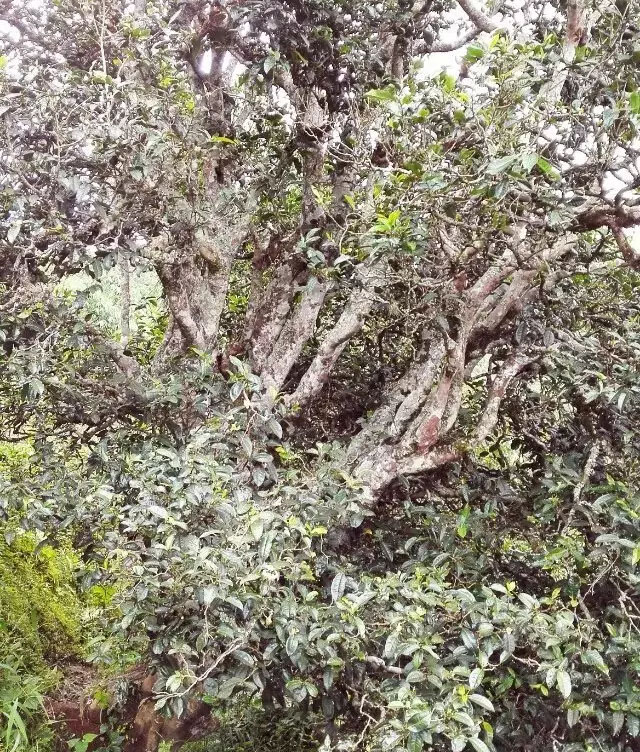目前在大朝山西鎮(zhèn)菖蒲塘村糯伍小組有一株茶齡近千年,高11米,樹冠13米的紫葉大茶樹,被稱為“糯伍茶樹王”。