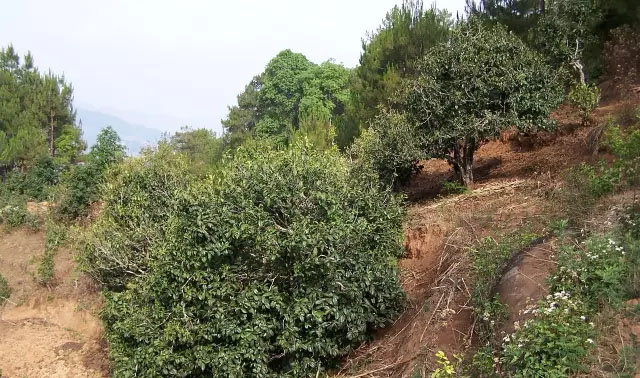 在大朝山西鎮(zhèn)菖蒲塘、昔元、邦旭和背陰寨等村民委員會,均分布有栽培型古茶樹,面積約500畝。最具代表性的是位于菖蒲塘村民委員會糯伍村民小組村邊的栽培型古茶樹群落,面積5畝左右。該群落中,古茶樹株高均在10米以上。根部基圍1.7-2.05米,冠幅6-7 ×8米有12株;樹齡約200年以上的有3株。其中一株高11.7米,基圍2.05米。品種據(jù)《云縣志》記載是擬細萼茶。