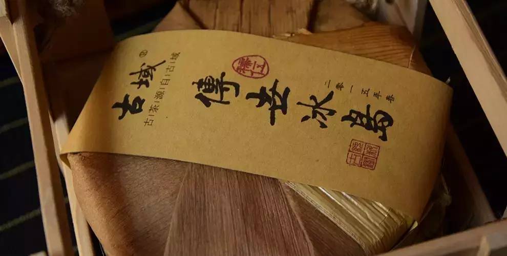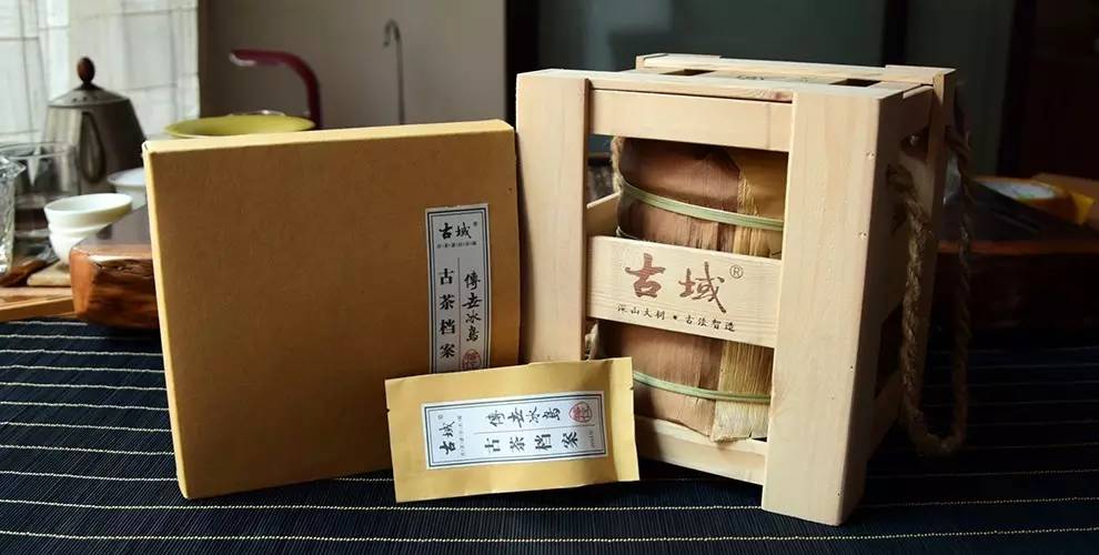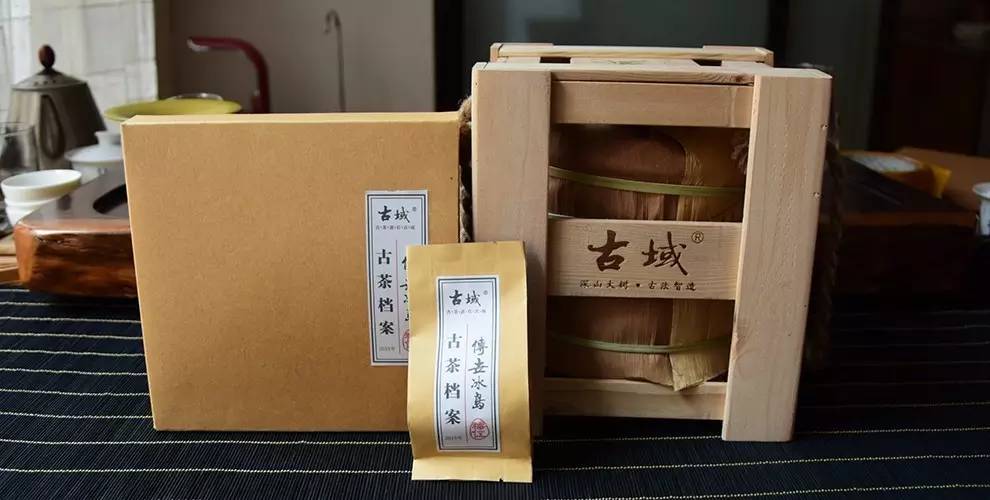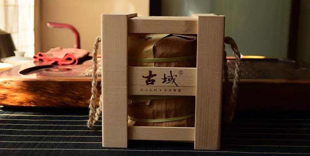 (木框為古域特制,專為藏茶設計,古樸、輕便、無異味,左側(cè)、右側(cè)皆激光刻有“古域”標志,打開木框可見提票)