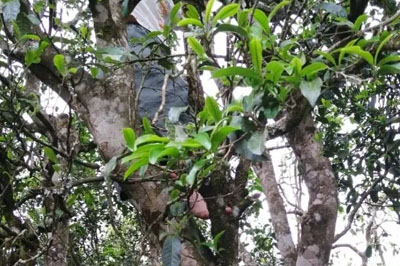 那些野生古茶樹群落到底是從哪里來的?它的謎底把我們再一次帶到了現(xiàn)實面前。循著大興鄉(xiāng)的大雪山森林覆蓋地域往前面行走,這是一片黝密的森林。人,直抵大地深處的密林,是為了搜尋
