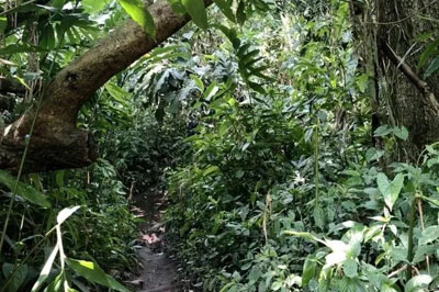 易武的銅箐河,至今還保持著最完整的原生態(tài)體系。沿著銅箐河谷道攀登古茶園,溪流兩岸峭壁環(huán)立,密林掩映,古茶樹依山崖而生,間雜各種樹木竹林,陽崖陰林,草木鮮香,入心入