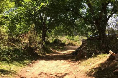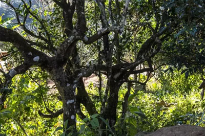 2016年11月的一個黃昏,筆者與琨哥(茶文化學(xué)者李琨)的鎮(zhèn)沅古茶山之行終于抵達(dá)打筍山。進(jìn)山的路真不容易,由于小轎車底盤不夠高,無法勝任進(jìn)山坑坑洼洼的路,只好換乘一輛越野